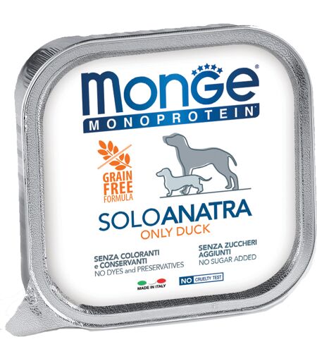 monge & c. spa Monge Cane Monoprotein Vaschetta Adulto Solo Anatra 150 Gr