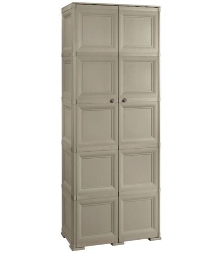 DESCRIZIONE GENERALE Armadio Omnimodus con vano verticale, puntale, 5 ripiani e ante a riquadri lisci in finitura legno. SPECIFICHE TECNICHE Dimensioni: 79 x 43 x h 203 cm Colore: Taupe ...