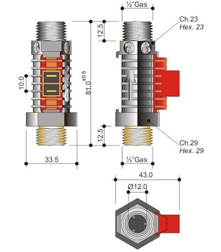 Flussostato acqua FLV-008 Montaggio: verticale Connessione idraulica: 1/2 Gas Connessione elettrica: 2 faston 6.3x 0.8 mm Materiale corpo: PPO Noryl GFN1630V nero Filetto ingresso: ottone Filetto uscita: PPO Noryl ...