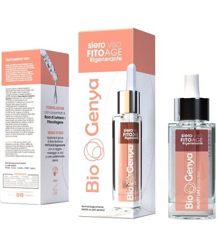 Siero Viso Fitoage Rigenerante Il siero BioGenya Fitoage Rigenerante rimodella i contorni del viso rinforzando il tessuto connettivo. La formula con Liposomi concentrati di Bava di Lumaca stimola la produzione di elastina endogena avviando un processo di turnover cellulare. Completa l'azione antiage lo speciale Fitocollagene, complesso di origine vegetale, che volumizza e riempie le rughe rendendole meno visibili. Il risultato è una pelle levigata e rimpolpata. Modalità d'uso Applicare 4 gocce con un leggero massaggio su viso e collo perfettamente detersi. Formato 30ml. ...