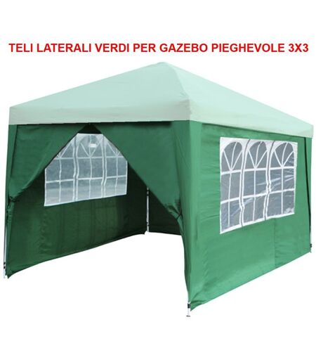 4 TELI LATERALI CHIUSURA DI RICAMBIO PER GAZEBO PIEGHEVOLE DA GIARDINO 3X3 FIERA MERCATINI TELI LATERALI PER GAZEBO 3X3 DA GIARDINO RIPIEGABILE SELEZIONA IL COLORE FRA BIANCO E VERDE !!! LINSERZIONE SI RIFERISCE SOLO AI 4 TELI LATERALI DI RICAMBIO MISURA 3 X 3 MT NUOVO MODELLO CON TESSUTO DI OTTIMA QUALITA' IL MIGLIORE SUL MERCATO AL PREZZO PIU' BASSO!!! LE NOSTRE SONO TUTTE FOTO REALI DEL PRODOTTO CHE RICEVERETE! ATTENZIONE!!! IL PREZZO PIU' BASSO D'ITALIA!!! CON LA MIGLIORE QUALITA' ESISTENTE SUL MERCATO!!! DAVVERO ROBUSTO CON COLORAZIONE BIANCO O VERDE A SCELTA Vi Basterà un attimo per montarlo e sarete subito pronti per usarlo!!! Guarda qui sotto tutte le foto, sono foto reali del prodotto e dei particolari e leggi le caratteristiche tecniche che troverai alla fine!!! Caratteristiche Tecniche Colore tessuto: Bianco o Verde a scelta Chiusure laterali con finestre e chiusura totale Tessuto Impermeabilizzato telo in Poliestere da 180 gr./mq Altezza di ogni singolo telo 190 cm circa, ...