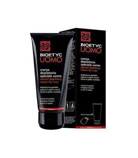 Crema depilatoria dalla formula leggera ed efficace, studiata specificatamente per l'uomo. Grazie alla pratica spatolina inclusa nella confezione, permette una depilazione precisa e puntuale. ### BIOETYC UOMO CREMA DEPILATORIA SPECIALE UOMO 200ML Scopri la comodità e l'efficacia della **BIOETYC UOMO CREMA DEPILATORIA SPECIALE UOMO**! Questa innovativa crema depilatoria è stata appositamente formulata per soddisfare le esigenze della pelle maschile, offrendo una soluzione rapida e indolore per la rimozione dei peli superflui. Con un formato generoso da 200ml, è ideale per l'uso regolare e per chi desidera mantenere un aspetto curato e raffinato. **Caratteristiche principali:** La crema depilatoria BIOETYC è caratterizzata da una formula delicata ma efficace, arricchita con ingredienti naturali che rispettano e nutrono la pelle. Grazie alla sua consistenza cremosa, si applica facilmente, garantendo una copertura uniforme anche nelle zone più difficili da raggiungere. È progettata per agire rapidamente, riducendo i tempi di attesa per una pelle liscia e vellutata. **Benefici:** - **Rimozione efficace dei peli:** La formula avanzata agisce in profondità, rimuovendo i peli dalla radice senza irritare la pelle. - **Adatta a tutti i tipi di pelle:** Testata dermatologicamente, è perfetta anche per le pelli più sensibili. - **Facile da usare:** Bastano pochi minuti per ottenere risultati sorprendenti, rendendo la tua routine di cura del corpo più semplice e veloce. - **Profumazione fresca:** Una leggera fragranza maschile lascia la pelle profumata e fresca dopo l'applicazione. **Modalità d'uso:** Applicare una generosa quantità di crema sulla zona desiderata, evitando il contatto con il viso e le mucose. Lasciare in posa per il tempo consigliato (di solito 5-10 minuti) e rimuovere con una spatola o un panno umido. Risciacquare abbondantemente con acqua tiepida per rimuovere eventuali residui. Per ottenere i migliori risultati, si consiglia di eseguire un test su una piccola area della pelle prima dell'uso. Con **BIOETYC UOMO CREMA DEPILATORIA SPECIALE UOMO**, dire addio ai metodi di depilazione dolorosi e complicati. Approfitta della comodità di una crema depilatoria progettata specificamente per te e goditi una pelle liscia e curata in pochi minuti. Acquista ora e scopri il piacere di una depilazione senza stress! ...