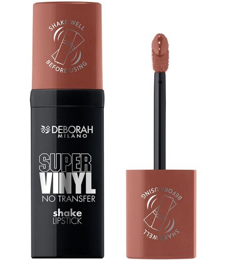 Colore brillante e luminoso, dall`effetto wow, per labbra glam che non passano inosservate: Super Vinyl No Transfer Shake Lipstick è il rossetto irrinunciabile per labbra viniliche e impeccabili fino a 16 ore!* Dai laboratori Deborah Milano nasce una formula rivoluzionaria per un rossetto vinilico in grado di donare pigmento puro e lucentezza a specchio in un solo gesto. Super Vinyl regala alle labbra un film aderente, lucido e flessibile grazie al rilascio di colore intenso fin dalla prima passata. La formula no transfer dona un look a prova di sbavatura mentre la durata testata straordinaria fino a 16 ore garantisce una performance senza precedenti. La sua texture, ultra-fluida e sottile, si stende con facilità regalando alle labbra un colore intenso resistente all`acqua, una copertura impeccabile e un finish lucido che si mantiene per l`intera giornata. Agitare bene il prodotto prima dell`applicazione.*test clinico su 20 soggetti. ...