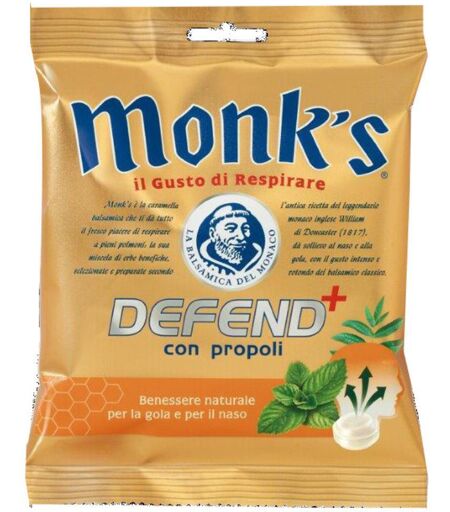 Akellas Srl Monks Caramelle Defend Propoli 46g – Sollievo Naturale per Mal di Gola e Igiene Orale con Propoli