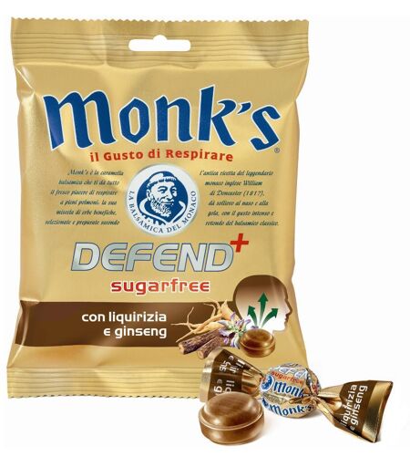 Akellas Srl Monks Caramelle Balsamiche Defend+ Liquirizia e Ginseng 46g – Sollievo Gola, Energia Naturale, Senza Zuccheri