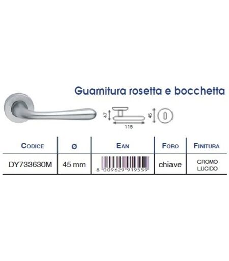 MASIDEF DY733630M - MANIGLIA PER PORTA INTERNA CROMO LUCIDO CON ROSETTA SERIE KAROL DIAMETRO 45MM FORO CHIAVE ...
