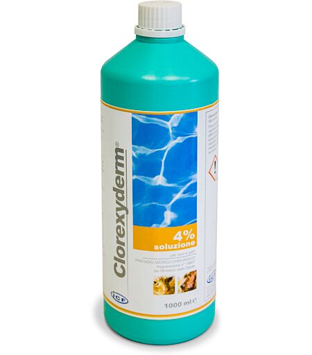 Clorexyderm - SOLUZIONE 4% Indicazioni: - coadiuvante della shampoo - terapia in corso di piodermiti profonde, dermatite delle pliche cutanee e dermatofitosi; - disinfettante della cute con azione umettante ed emolliente; - disinfettante per l'asepsi chirurgica del paziente e del chirurgo; - deterg… ...