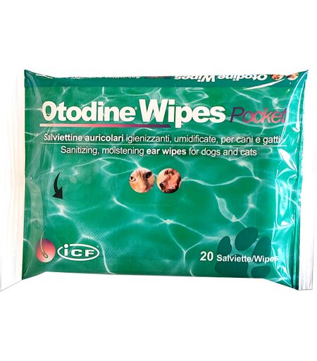 Otodine Wipes Pocket - Descrizione Salviettine auricolari igienizzanti, umidificate, per cani e gatti. La sua specifica formulazione conferisce al prodotto azione efficace nella rimozione dell'eccesso di cerume e azione coadiuvante al trattamento otologico grazie all'associazione sinergica del tris… ...
