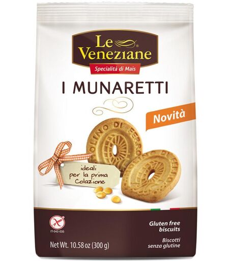 I MUNARETTI - LE VENEZIANE - Biscotti dietetici, senza glutine. Conservazione Conservare in un luogo fresco e asciutto. Formato 300 g. ...