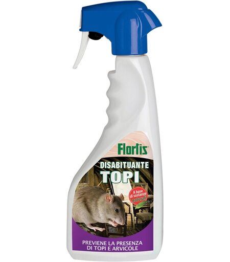 Flortis disabituante topi è un disabituante studiato per prevenire in modo la presenza di topi nelle cantine, soffitte, garage. Il prodotto è una miscela di oli ed essenze naturali le cui fragranze sono sgradevoli ai topi. Pulire le zone da trattare da eventuali escrementi. Agitare il falcone e spruzzare ad una distanza di 30/40 cm sulla zona da proteggere. All`inizio spruzzare tutti i giorni, poi a giorni alterni. In caso di lavaggio della superficie trattata, è necessario distribuire nuovamente il prodotto. ...