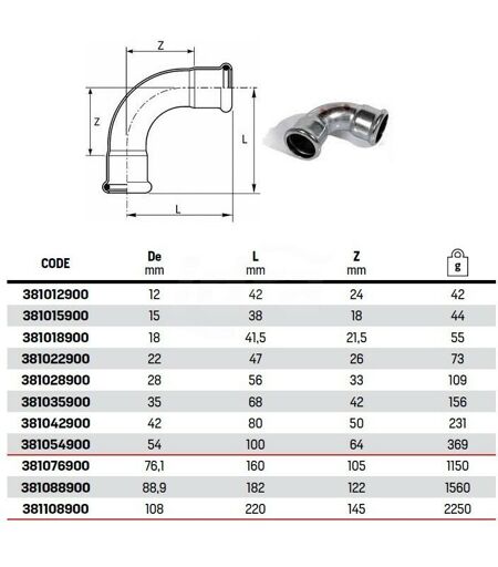381/900 Curva 90° FF ø42 STEELPRES ...