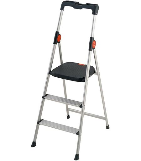 In alluminio anodizzato. Leggerissimo, con piedini antiscivolo zigrinati, piattaforma in plastica con sistema apertura e chiusura con bloccaggio rapido. Vaschetta multifunzione in plastica. Superficie gradini da 10 cm di larghezza. Conforme alle norme vigenti EN131 D.Lgs 81/08. Portata Kg 150. Made in Europe. ...