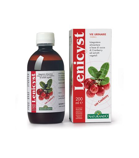Lenicyst - Descrizione Integratore alimentare a base di Cranberry Uva ursina Pompelmo e Verga d'oro. Gli estratti vegetali di Cranberry Uva ursina e Verga d'oro risultano utili per favorire la funzionalità delle vie urinarie. Senza glutine e senza lattosio. Adatto ai vegani Ingredienti Fruttosio… ...