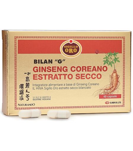 BILAN "G" GINSENG COREANO ESTRATTO SECCO - Integratore alimentare a base di ginseng IL HWA Sigillo Oro e vitamina E. Il ginseng è un tonico - adattogeno anche in presenza di stanchezza fisica e mentale. La vitamina E contribuisce alla protezione delle cellule dallo stress ossidativo. IL HWA Sigillo… ...