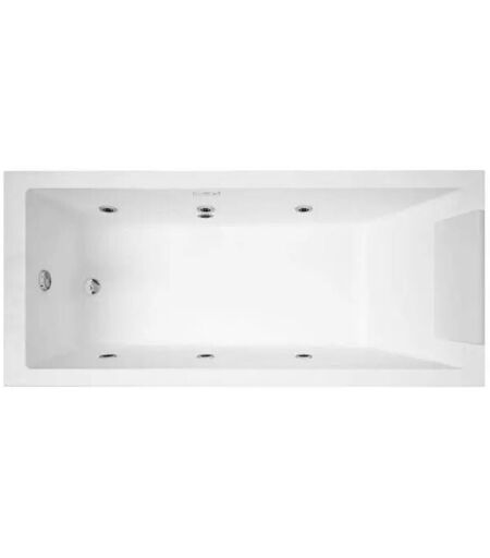Vasca rettangolare idromassaggio whirpool 6 jets. massaggio a getto d'ariacon regolazione manuale. dotata di poggiatesta in eva. impermeabile antibatterico e atossico. 2 pannelli (uno frontale e uno laterale) e colonna di scarico. comando on/off. vasca realizzata in vetroresina e pannelli in acrilico. rubinetteria non inclusa. ...