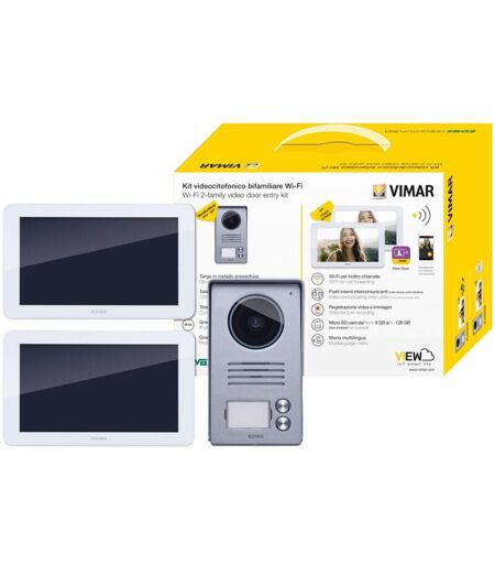VIMAR K40956 Kit videocitofonico da parete con: 2 videocitofoni touch screen vivavoce Wi-Fi a colori lcd 7', targa audiovideo 2 pulsanti, 2 alimentatori,