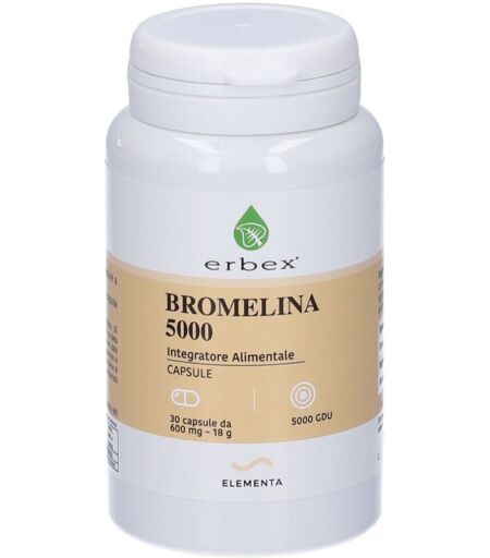 Gli integratori non sostituiscono un’alimentazione equilibrata e variegata e uno stile di vita sano.BROMELINA 5000 è un integratore composto da bromelina ad altodosaggio (5000 gdu) che presenta attività antinfiammatorie, antiedemose, antitrombotiche, analgesiche e fibrinolitiche.IngredientiBromelina 5.000 GDU/gr (da ananas comosus (L) Merr. Stipiti), gelatina (capsula), agente antiagglomerante: Sali di magnesio degli acidi grassi, agente di carica: amido di maisAssunzione consigliataSi consiglia di assumere 1-2 capsule al giorno.AvvertenzeNon superare la dose giornaliera raccomandata. Tenere fuori dalla portata dei bambini al di sotto dei tre anni. Conservazione:Conservare in un luogo fresco e asciutto. Si prega di fare riferimento, se necessario, ad ulteriori istruzioni riportate sulla confezione. Contenuto netto30 CapsuleProduttoreErbex SrlVia Del Laghetto, 11045021, Badia Polesine, ROItalia ...