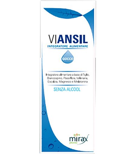 VIANSIL GOCCE - Descrizione Integratore alimentare a base di estratti secchi titolati di Biancospino Passiflora Tiglio Valeriana Escolzia e di magnesio e melatonina. Il Biancospino favorisce il rilassamento e il benessere mentale mentre Passiflora Tiglio Valeriana ed Escolzia contribuiscono … ...