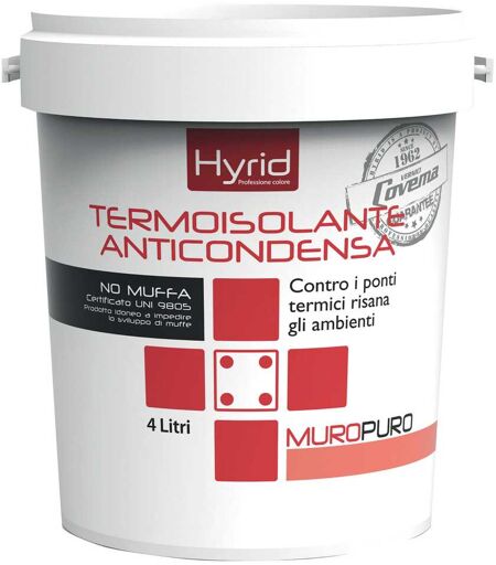 Idropittura Termoisolante Hyrid Bianca 4 L Anticondensa 1,5-2 M² Con 1 L A 2 Mani ...