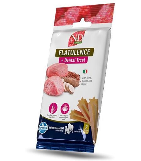 N&D Dental Treat Flatulence Lamb 100g è uno snack dentale cane studiato per favorire l’igiene orale e ridurre la flatulenza del cane, grazie a ingredienti naturali senza cereali né conservanti artificiali. ...