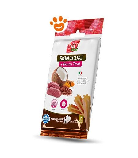 Farmina - Dog Snack Dental Treat N&D Quinoa Skin&Coat Cervo Medium/Maxi Dog Snack Dental Treat N&D Quinoa Skin&Coat Cervo Medium/Maxi - Confezione Da