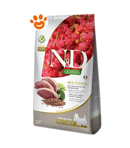 Farmina Dog N&D Quinoa Neutered Adult Mini Anatra Broccoli e Asparagi Dog N&D Quinoa Neutered Adult Mini Anatra Broccoli e Asparagi - Sacco Da 800 Gr