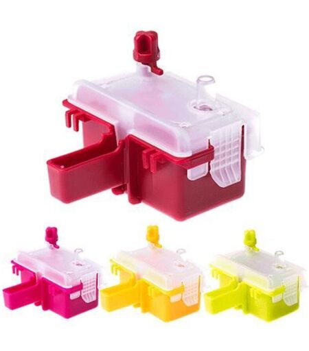 Indicato per canarini, pappagallini, quaglie, pernici. Realizzato in plastica alimentare resistente. Attacco universale per voliere e gabbie a rete, vaschetta fissa, gruppo galleggiante completamente estraibile per la pulizia (mantenendo collegamento idrico), regolazione livello acqua a tre livelli. Funziona collegato ad una rete idrica centralizzata a caduta.. Dybird. Prezzo inteso per : 1 PZ ...