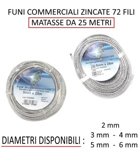 NO BRAND Funi Commerciali Zincate 72 Fili Matasse Da 25 Mt Diametro 3 Mm