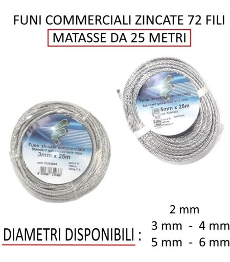NO BRAND Funi Commerciali Zincate 72 Fili Matasse Da 25 Mt Diametro 5 Mm