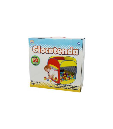 Giocotenda e' leggera e facile da trasportare, e' un box che puo' essere usato sia all'interno che all'esterno e i vostri bambini lo adoreranno! I piu' piccini potranno divertirsi a maneggiare in tutta sicurezza le palline, sviluppando nuove sensazioni tattili e visive. Puo' essere riposta nella pratica sacca in dotazione, per un ingombro minimo ed e' facile da aprire e richiudere. Nella confezione sono incluse 50 palline colorate. ...