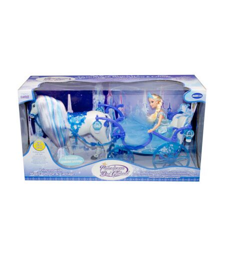 La Principessa dei Ghiacci e' pronta per andare al ballo con la sua carrozza azzurra bellissima trainata da un cavallo bianco con lunga criniera. Il cavallo cammina davvero!!! ...