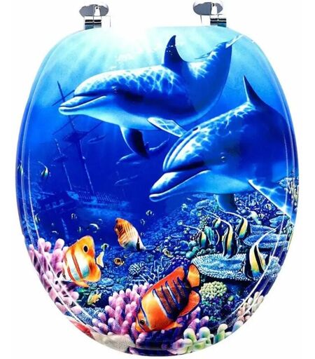 LGVSHOPPING - Copriwater Universale con Stampa Delfini Oceano Copri Tavoletta wc Bagno Legno