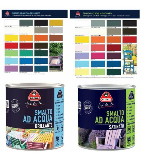 BOERO Smalto ad Acqua Brillante Satinato Inodore Ferro Legno Interno Esterno Formato: 0,125 l - Colori: Bianco Satinato