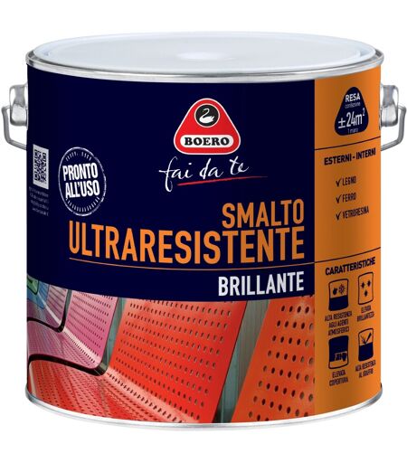 Smalto ultraresistente pronto all`uso ad elevata elasticità, dilatazione e copertura. Facile da applicare sui più svariati tipi di supporto: manufatti in ferro e legno, carpenterie, ecc. All`esterno è altamente resistente nel tempo all`aggressione di agenti atmosferici ed inquinanti, anche in ambienti particolarmente aggressivi come quelli marini o industriali. ...