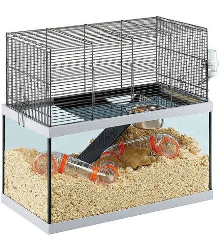 Gabry 60 è una gabbia per gerbilli in vetro completata da una struttura in rete metallica verniciata munita di sportellini apribili dall’esterno, provvisti inoltre di sistema chiusura di sicurezza. Dimensioni: 60 x 31.5 x h 52 cm ...