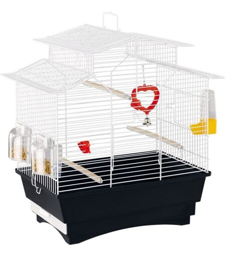Pagoda è una gabbia di piccole dimensioni ideale per canarini, esotici e altri uccelli.Il fondo in plastica ha un'originale forma a gradini ed è completo di cassetto estraibile per la pulizia.. Dimensioni: 47 x 29.5 x h 50 cm ...