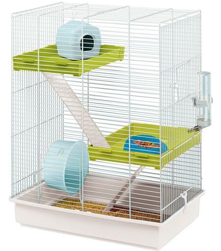 Completa di ripiani in plastica collegati da scalette, è l'habitat ideale per criceti particolarmente vivaci. Dimensioni: 46 x 29 x h 58 cm ...