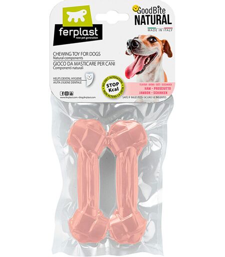 FERPLAST GOODBITE NATURAL HAM BONE Gioco da masticare per cani al sapore di prosciutto - 6 misure. Variante M - Misure: 13.5 x 4.4 x h 2.1 cm -