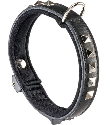 FERPLAST - giotto luxor black c Collare in pelle naturale nera con borchie e microregolazione - 6 misure. Variante C20/34 - Misure: a: 30-34 cm b: 20