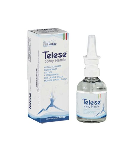 Telese Spray Nasale ACQUA SULFUREA BICARBONATA CALCICA E MAGNESIACA PER L'IGIENE DELLE MUCOSE DI NASO E GOLA Acqua minerale naturale che sgorga dalle sorgenti sulfuree di "Telese Terme". 100% Naturale senza aggiunta di conservanti e propellenti è ideale per mantenere sane ed efficienti le mucose n… ...