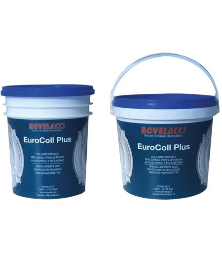 In pasta bianca. Adesivo di montaggio in dispersione acquosa speciale per cornici, profili e rosoni in polistirolo e poliuretano. Rapida asciugatura, antimuffa, effetto ventosa. Temperatura di applicazione: da 8 a 35 gradi C. Temperatura d'impiego ad essiccazione avvenuta: da 0 a 55 gradi C. Resa media: su cornici 1 kg per 20 ml, su pannelli 1 kg per 2 mq.. Eurocoll Plus - Gr. 450 cartuccia. Prezzo inteso per : 1 PZ ...