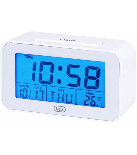 Trevi Sld 3P50 Orologio Digitale Termometro, Grande Display lcd Retroilluminato, Sveglia Programmabile, Funzione Snooze, Bianco, Acciaio inossidabile,