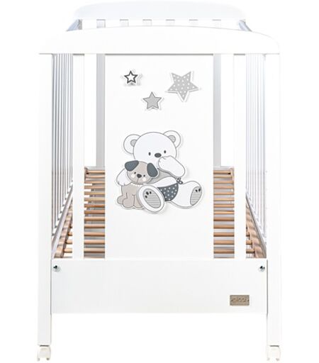 Lettino Picci Valdo Con Pannello Decorato Il lettino Valdo di Picci ha un pannello interamente decorato con un simpatico orsetto, un cagnolino, e delle stelline. Il lettino e compreso di: due sponde mobili, bordo salvamorso, e rete con doppia altezza (kit incluso). Misure: 70 x 130 x 100 cm ...
