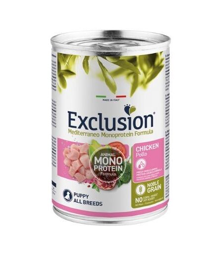 Exclusion Dog Mediterraneo Puppy Junior Pollo Patè Lattina 400gr