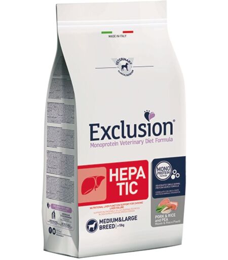 Exclusion Diet Hepatic Medium Large Maiale Riso e Piselli Monoproteico per Cani 12 Kg