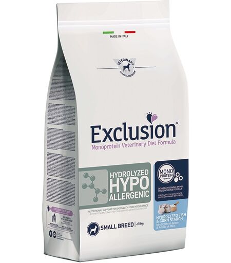 EXCLUSION CANE DIET HYDROLYZED HYPOALLERGENIC ADULTO SMALL PESCE & AMIDO DI MAIS 2 KG ...
