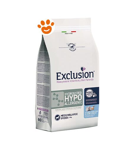 EXCLUSION Dog Hydrolyzed Hypoallergenic Adult Medium Large Breed Pesce e Amido di Mais - Dog Hydrolyzed Hypoallergenic Adult Medium Large