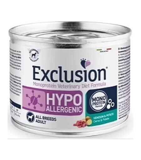 Alimento Completo Dietetico Per Cani Tutte Le Taglie Alimento completo dietetico con formulazione monoproteica animale per cani con intolleranza alimentare Exclusion Monoprotein Veterinary Diet Formula Hypoallergenic è un alimento dietetico con formulazione monoproteica, realizzato con un’unica fonte alternativa di proteine animali, ingredienti innovativi e preservato con tocoferoli naturali; rappresenta la risposta nutrizionale a disposizione del Veterinario, differenziata per taglia, come supporto nutrizionale per cani con intolleranze alimentari. Caratteristiche Exclusion Diet Hypoallergenic Venison and Potato All Breeds è un alimento completo dietetico per cani adulti formulato per la riduzione di intolleranze a ingredienti e a sostanze nutritive. Questo alimento completo dietetico possiede fonti selezionate di proteine e carboidrati. HYPOALLERGENIC Supporto nutrizionale per cani con intolleranze alimentari MONOPROTEIN FORMULA Una sola fonte proteica animale per ridurre al ...