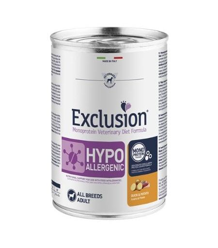 Exclusion Dog Diet Hypoallergenic Anatra e Patate Patè Lattina 400gr