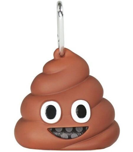Dispenser per sacchetti igienici in PVC dal simpatico design che riprende l'emoji ""cacca"". Costruito con materiale resistente e duraturo è dotato di un pratico moschettone in metallo con clip che permette di agganciare il dispenser ad una borsa, alla ci ...